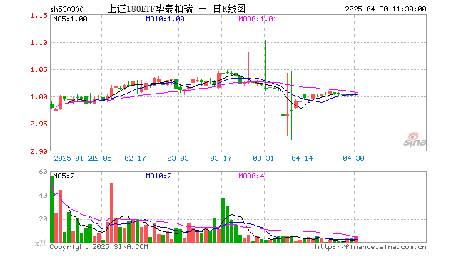 上证180ETF华泰柏瑞(530300)涨0.20%, 半日成交额521.91万元